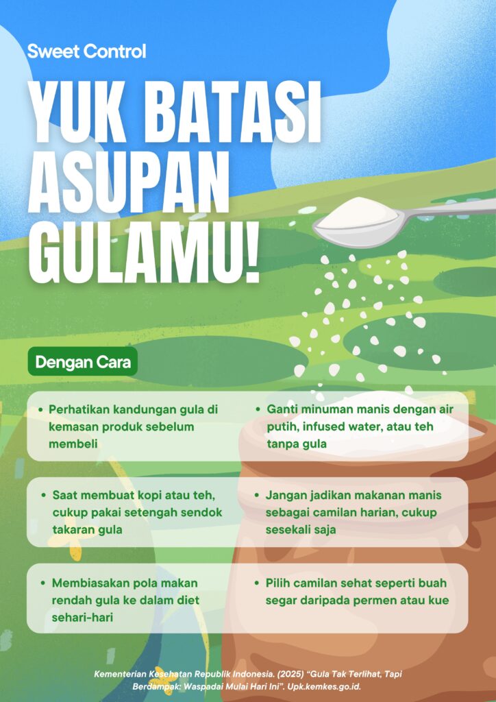 Konsumsi gula berlebih menjadi salah satu faktor risiko utama berbagai penyakit tidak menular, seperti obesitas, diabetes melitus, dan penyakit jantung. Sayangnya, banyak orang tidak menyadari bahwa gula tersembunyi ada dalam berbagai makanan dan minuman yang tampak “sehat” atau “biasa saja”. Mulai dari minuman kemasan, saus, roti, hingga camilan ringan semuanya bisa menjadi sumber gula tambahan yang tanpa sadar meningkatkan kadar gula darah. Padahal, kebutuhan gula harian tubuh sebenarnya sangat sedikit, dan jika dikonsumsi berlebihan justru dapat berdampak buruk bagi kesehatan jangka panjang.